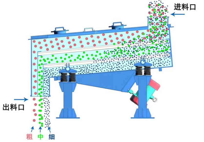 直線振動篩:結構以篩箱為主體,內置單層或多層篩網。其核心動力來自兩臺同步反向旋轉的振動電機,產生直線激振力。設備通過減振彈簧支撐于底座,以隔離振動。結構堅固,適合大產量連續作業。