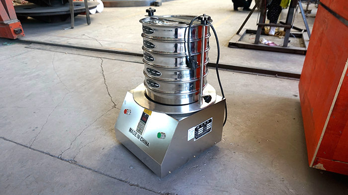 電機帶動上部振動托盤振動,由振動托盤傳導至安放在振動盤上部篩框上,然后由需要檢測目數(shù)的篩框把小于篩面網(wǎng)孔的物料顆粒篩分至下層篩框,一般情況下,試驗篩一次可安裝1-7層標準篩框,同時篩分出2-7個不同規(guī)格的待檢樣品。