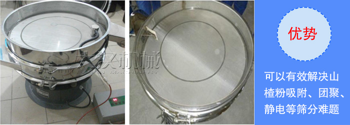 超聲波振動篩分機優勢:可以有效解決山楂粉吸附、團聚、靜電等篩分難題!同時也能提升山楂粉產量問題,相比普通旋振篩在篩分細度可提高1—70%,產量可提高0.5-10倍。